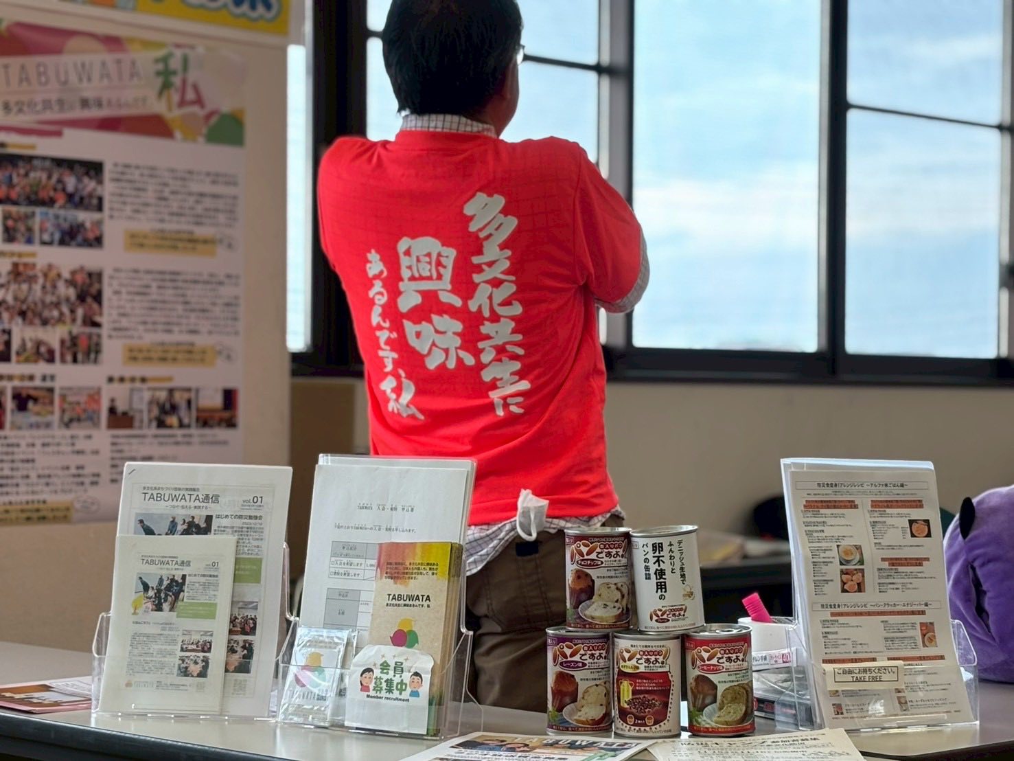 今年は少し趣向が変わり、テーマが設けられました。「防災」です。私たちもテーマにそって、以前作成した「防災食アレンジレシピ」などを展示し、来月行う「多文化防災キャンプ」の案内もしました。